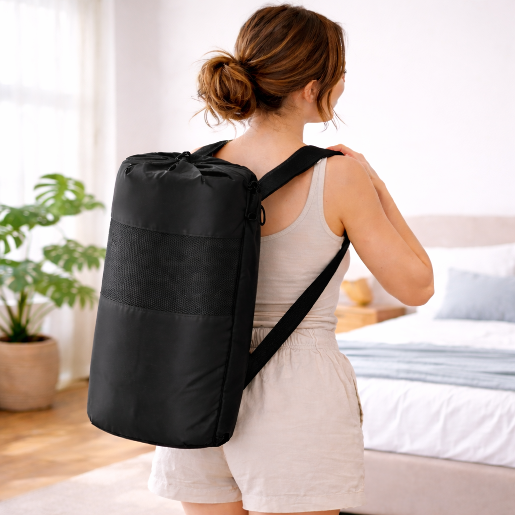 Úgy terveztük a matracot, hogy ne csak otthon, hanem útközben is kényelmesen használható legyen. Könnyen feltekerhető, praktikus hordtáskában elfér, és kis helyet foglal, így bárhová magaddal viheted – legyen szó utazásról, munkáról vagy pihenésről.